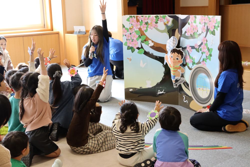 学科の学びと並行して保育士養成課程※を受講していたため、保育の知識も有しています。それを活かし、仲間4人で「大型仕掛け絵本」を制作。片面A 0サイズの巨大絵本で、没入感を高めるために文字をなくし、体を動かして楽しむ仕掛けを盛り込みました。地域の図書館で「えほんシアター」を上演し、子どもたちが目を輝かせて喜んでくれたことは最高の思い出です。卒業後は指導職に従事します。