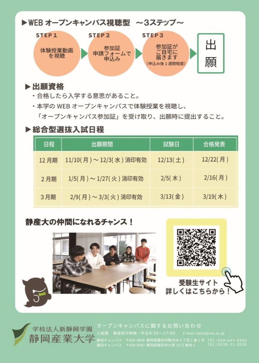 現在、WEBオープンキャンパス視聴型での出願受付を実施しており、エントリーは2026年3月3日(火)まで可能です。