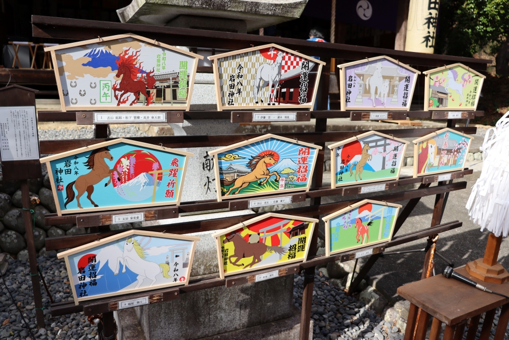 岩田神社には、投票で選ばれた大絵馬だけでなく、全てのデザイン案が境内前に展示されております。神社に行った際は、ぜひご覧ください。