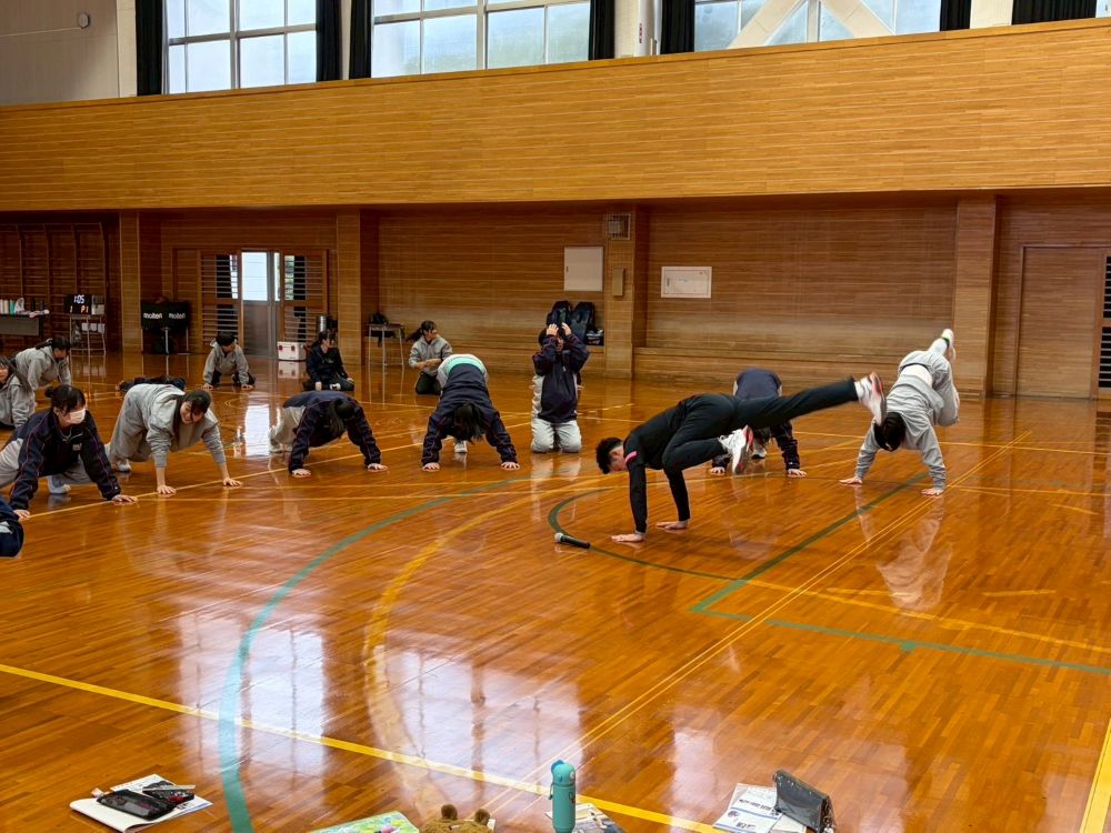 藁科講師は、解剖学・バイオメカニクスの知見から、なぜケガが起こるのか、どうすれば爆発的な一歩が踏み出せるのかを実演。生徒たちは自身の身体の変化を即座に体感し、真剣な眼差しで取り組んでいました。