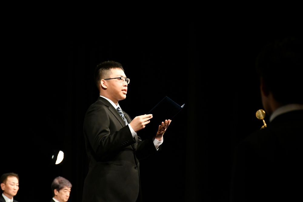 在学生歓迎の辞(経営学部 片山諒平さん)