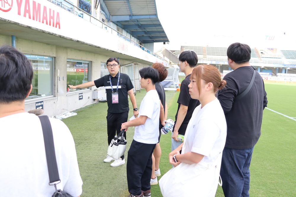 9月27日、本学スポーツ科学部所属の塩梅講師が主催し、静岡県内のプロサッカーチーム・ジュビロ磐田(明治安田生命J2リーグ所属)のホームスタジアムであるヤマハスタジアムにて見学ツアーを実施しました。