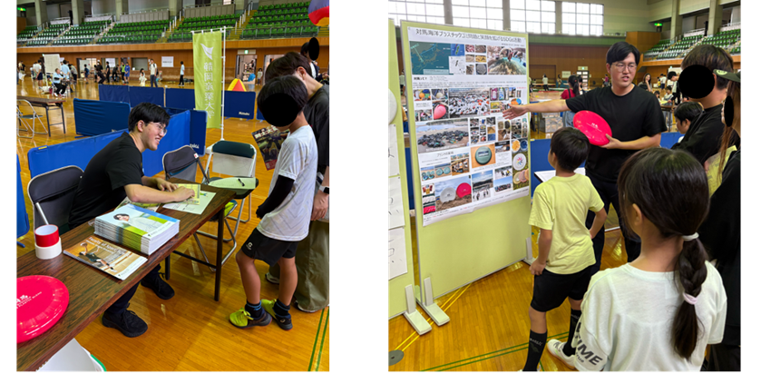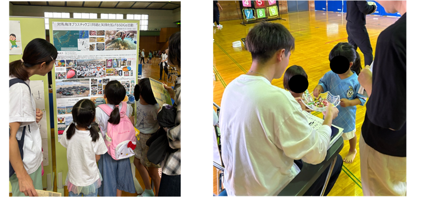 待ち時間を活用し、ゼミのSDGs活動を紹介。来場者の環境問題への関心喚起につなげました。