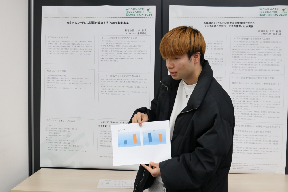 2026年1月31日(土)および2月1日(日)の2日間、本学磐田キャンパス図書館2階ならびにJR藤枝駅南のサテライトキャンパス(Biviキャン)において、「第4回 静岡産業大学経営学部 卒業研究・制作展2026 ‐つなぐ-」を開催しました。