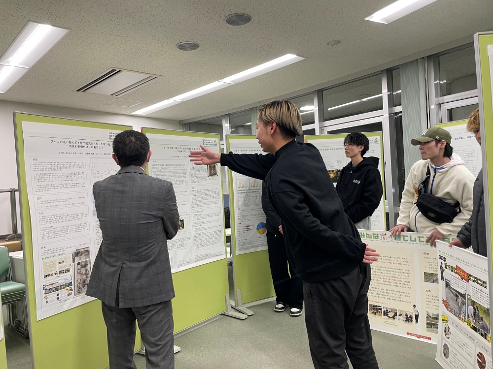 研究テーマは、経済分析の結果をビジネスに応用した研究をはじめ、3DCGを活用したデザイン制作、地域課題の解決に向けた提案、感性工学の視点を取り入れたものづくりの研究など多岐にわたり、全50テーマが発表されました。なかには、口頭発表とポスター発表の双方にチャレンジした学生もいました。